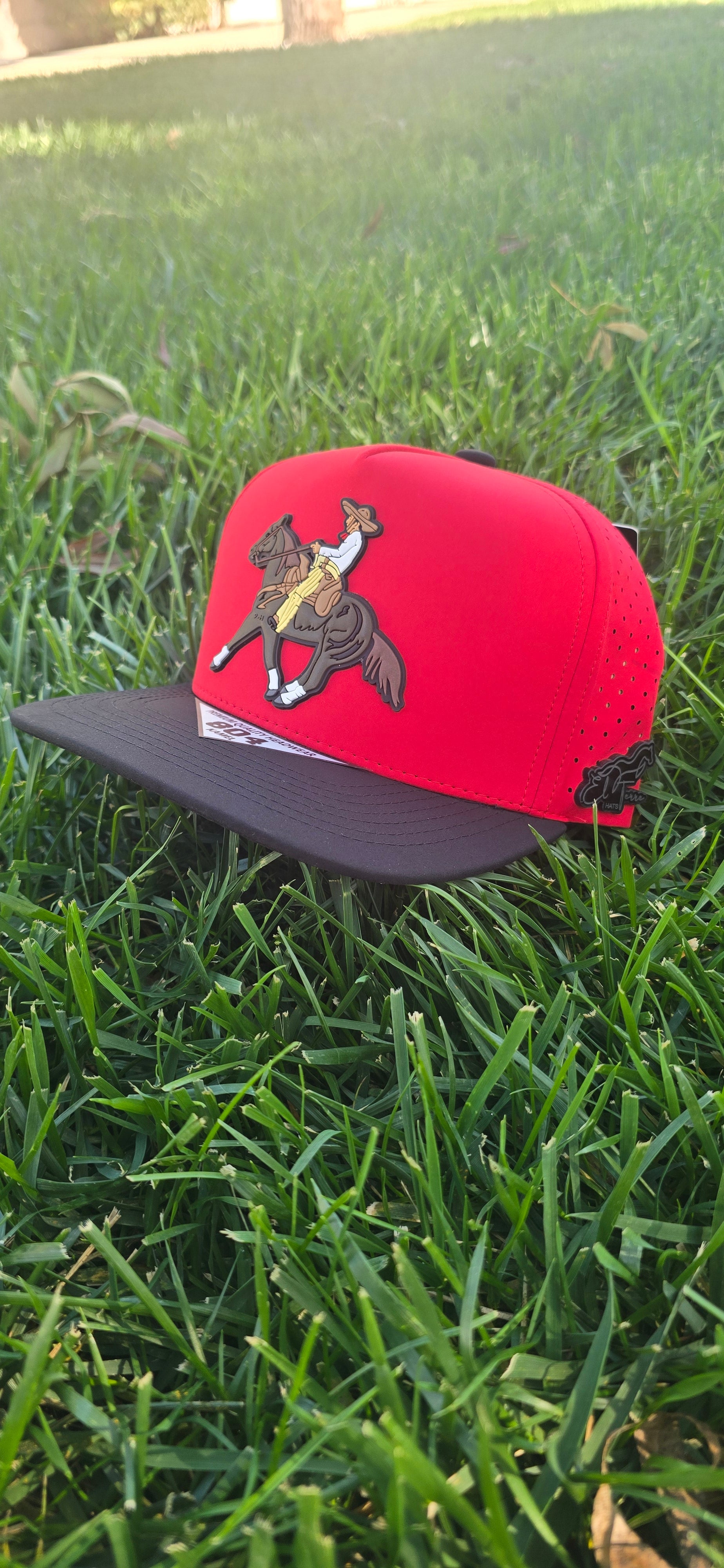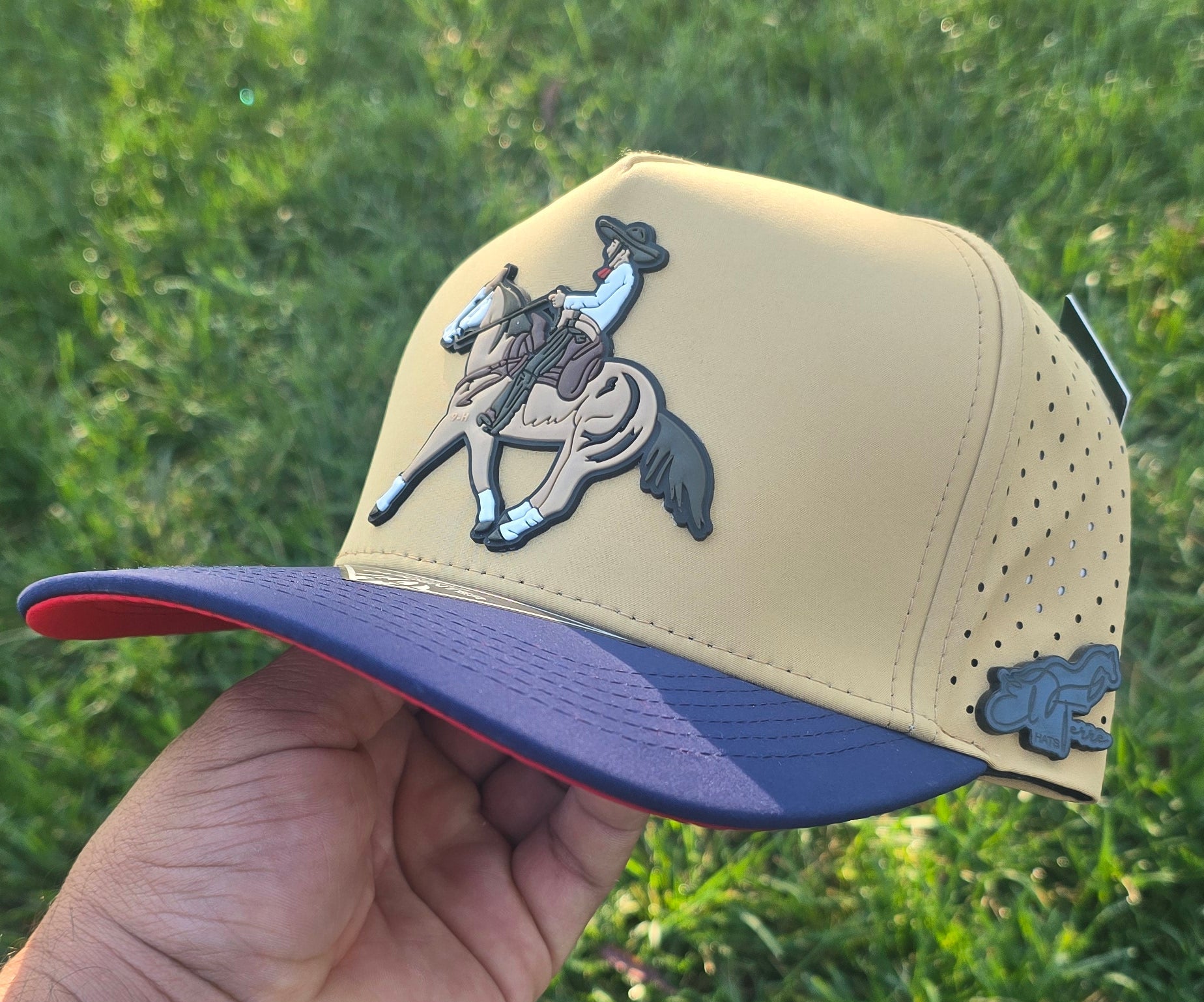 Cala de caballo con placa en goma frontal,lateral izquierdo pin del el terre hats, lateral derecho pin de orgullosamente soy charro.Combiancion de Colores Con toque moderno.