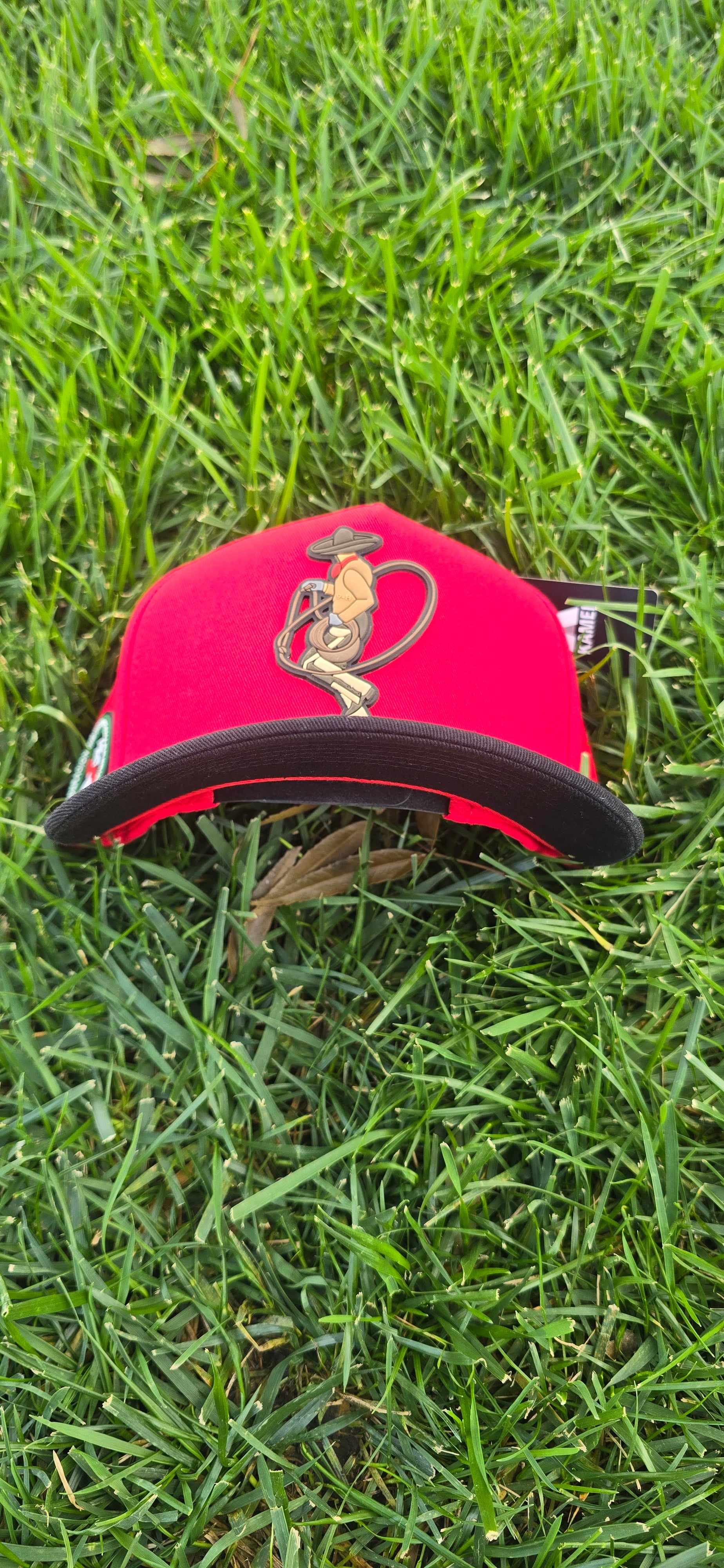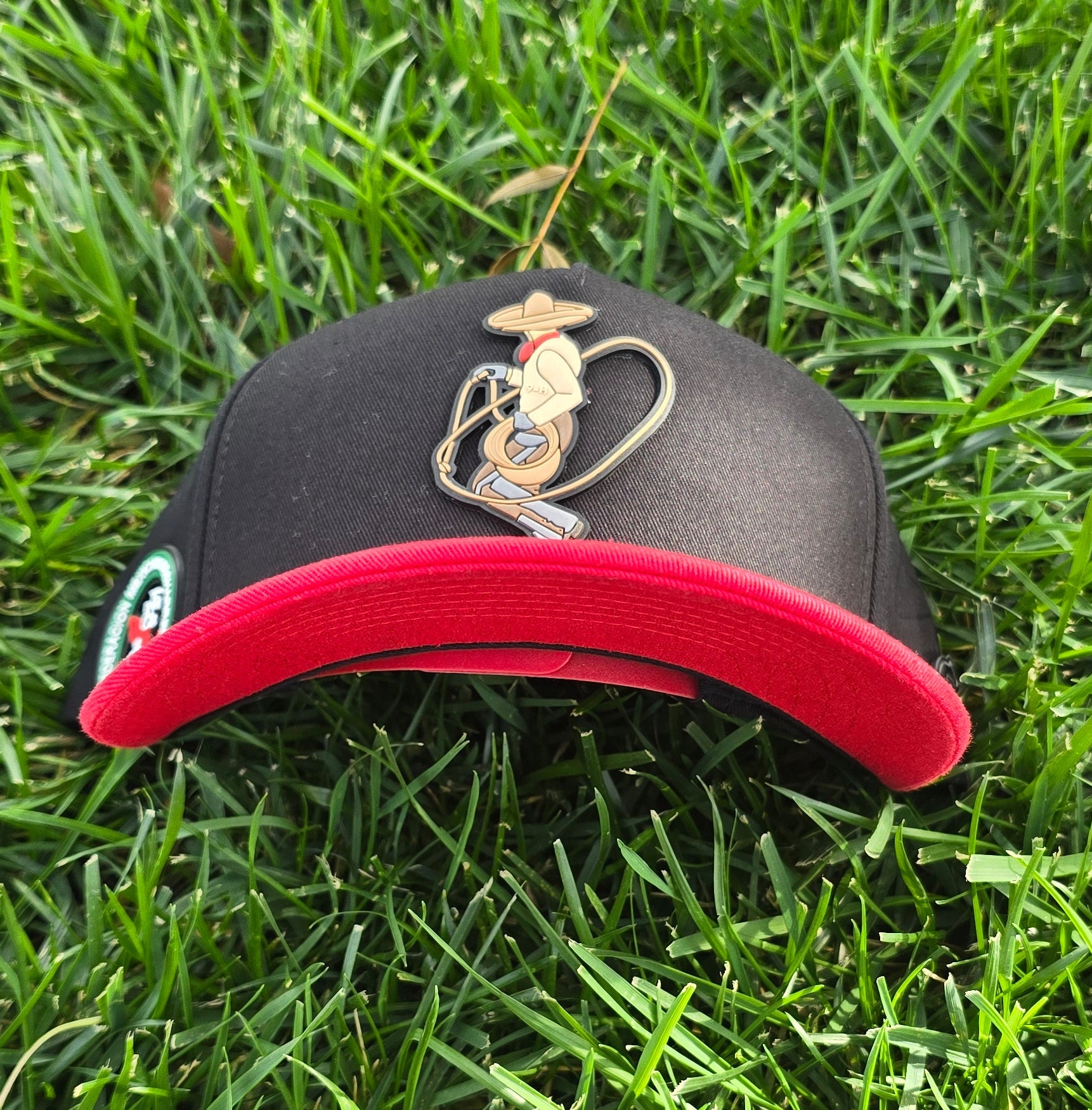 Floreo A Pie, placa frontal de goma,lateral izquierdo el terre hats,lateral derecho federacion mexicana de charreria en goma